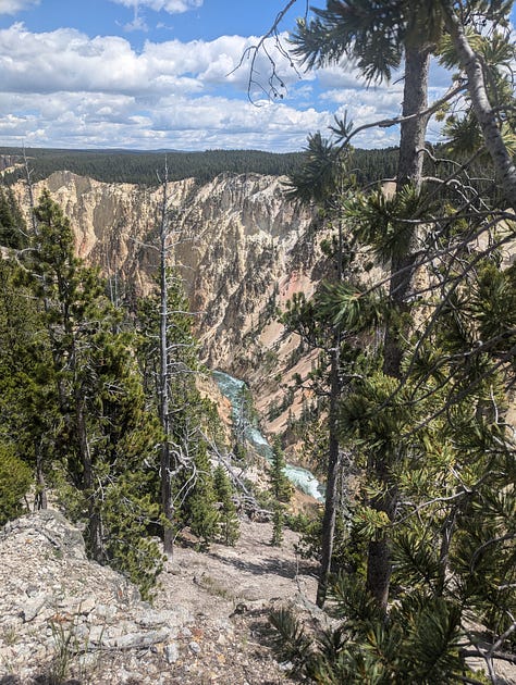 Unfortunately, there had been a shooting at Canyon Village only a few days before, so the visitor center was closed during the investigation, but we were still able to take a break at the gift shops and look around before we continued on our drive north and west.