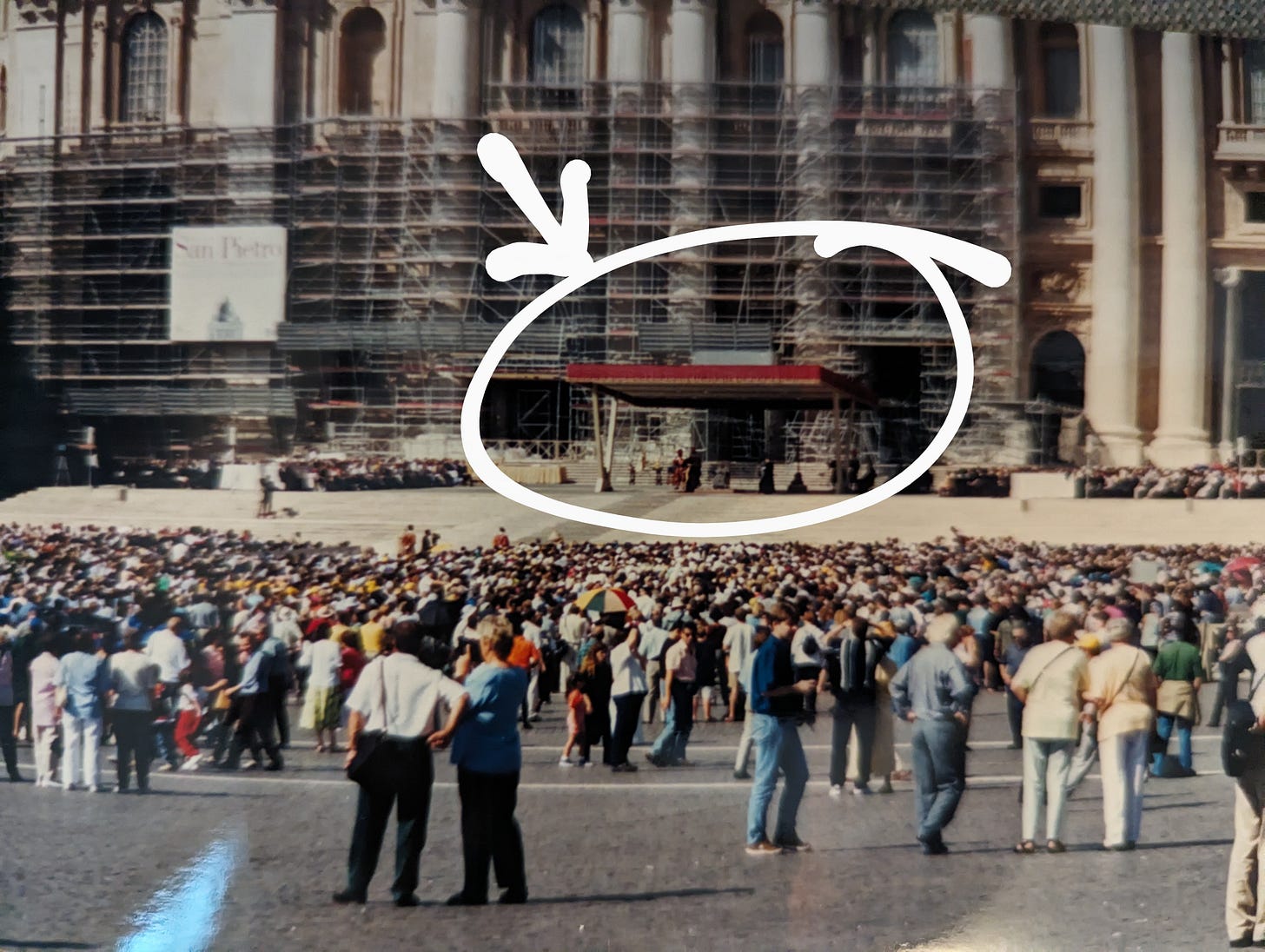 Ignorant of traditions and schedules, we had no idea when we arrived at the Vatican that Pope John Paul II would be giving a Wednesday sermon to thousands of faithful Catholics. St. Peter’s Square was packed and we listened to him speaking in Italian to the masses, zooming our film cameras in as much as we could to capture the event.