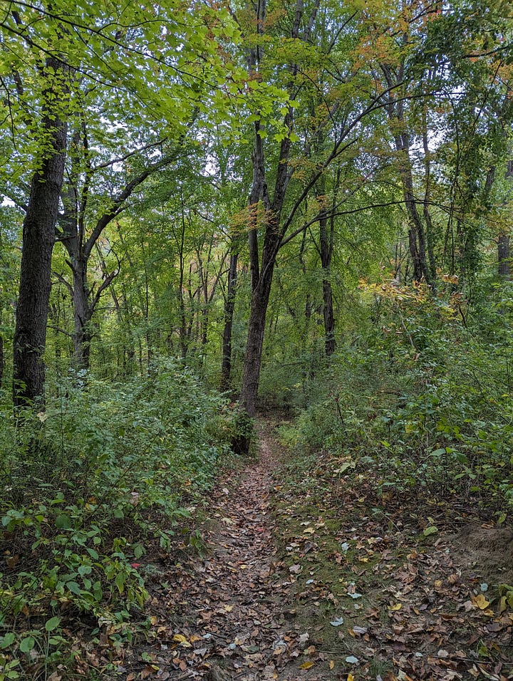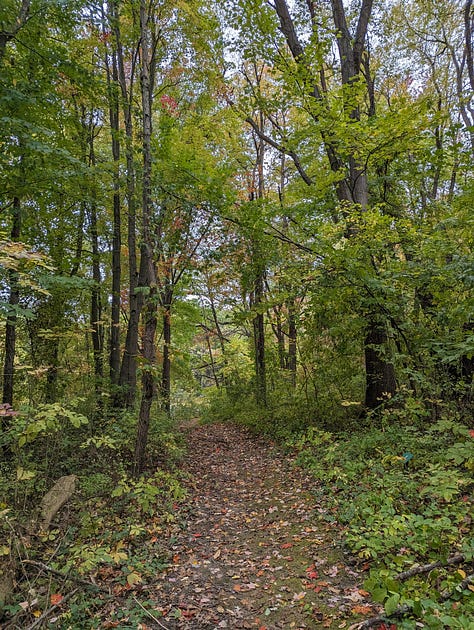 Our daughter wanted to read, our son wanted to go into Ann Arbor to find U of M gear, and I wanted time out in nature. It appeared that we would be doing the unusual and splitting up the family for a few hours. After the boys left, I headed out on the Dry Marsh Trail, right in our campground loop. While it was a short one-mile hike, it still took me into the woods, the fall colors popping up all around me.