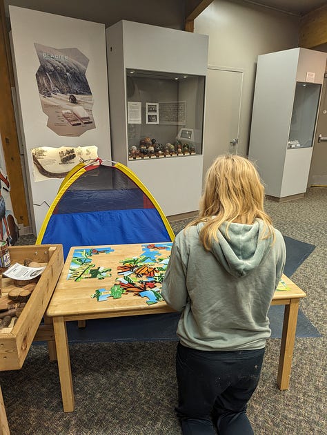 Because of the Michigan game and the threat of incoming rain, we really had one day to do anything in the park. We also had to be aware of our son’s limitations. Since we didn’t have a trail map, we drove to the Gerald E. Eddy Discovery Center to get park information. We found a fantastic learning center—both kids forgot their age and enjoyed the activities intended for much younger children—and walked the short trail around the natural play area, finding forts made of sticks and other natural play equipment that our kids could have spent hours playing with when they were younger. Unfortunately, the many trails around the Discovery Center would have to wait for our planned return in a month and a half.