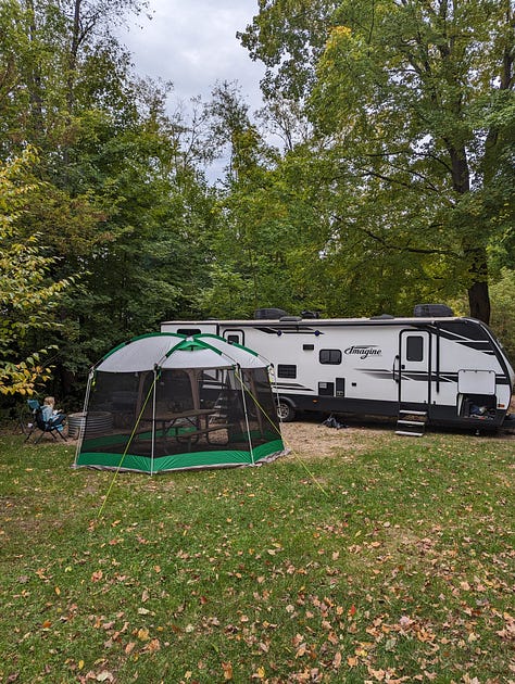With our geographical location narrowed down to a reasonable driving distance from Ann Arbor (there were several options), I finally landed on Waterloo Recreation Area, a 20,000-acre park in southeast Michigan. It is the largest state park in the Lower Peninsula and home to eleven inland lakes. It looked beautiful and offered enough outdoor options for us to enjoy both before and after two of the four of us went to Ann Arbor for a Saturday football game.