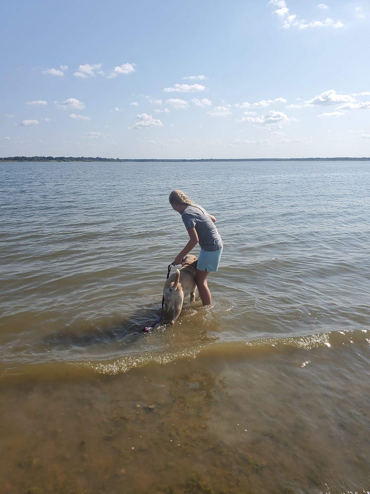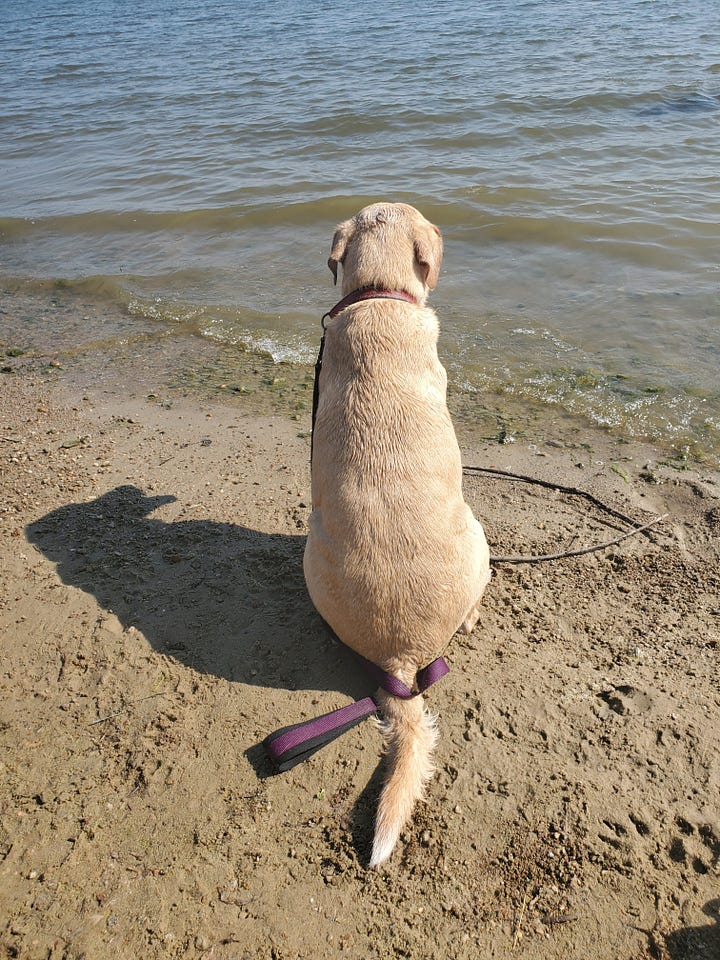 With several trails to discover, we decided to take a trail along the lake. Our son begged us to bring the dogs, convinced that if we took them to water we could get them to go swimming.