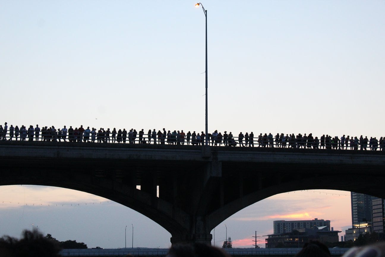 Years later, as I was reading Laura Dave’s novel, The Last Thing He Told Me, I could clearly visualize the scene on the Congress Avenue bridge with the bats. If the bats are one of the things keep Austin weird, they should do everything they can to protect them. It is a truly phenomenal natural experience in the middle of a modern American city. (I made this story part of the prologue for my upcoming book, The Life I Never Knew I Wanted. You can watch the video below.)