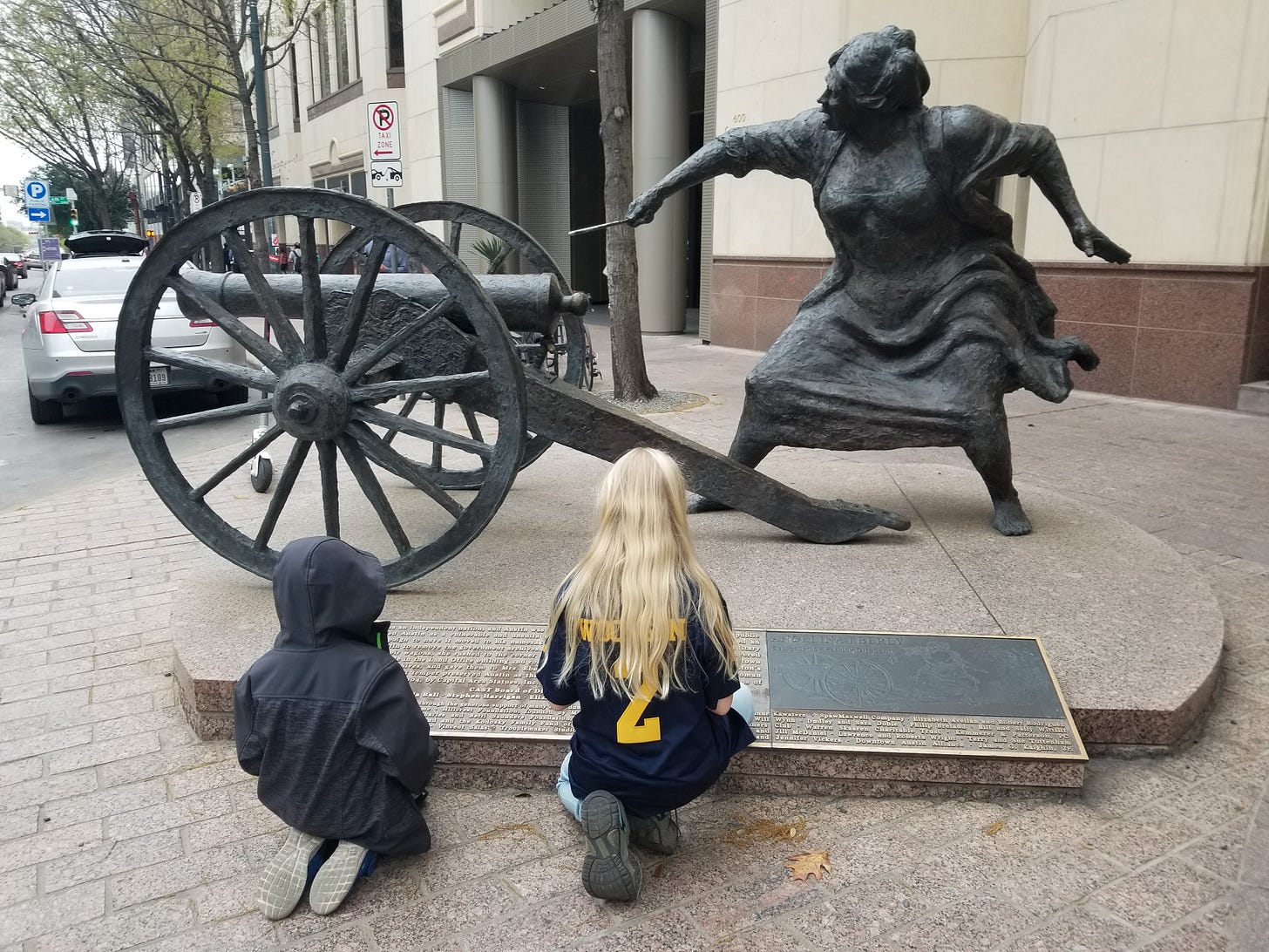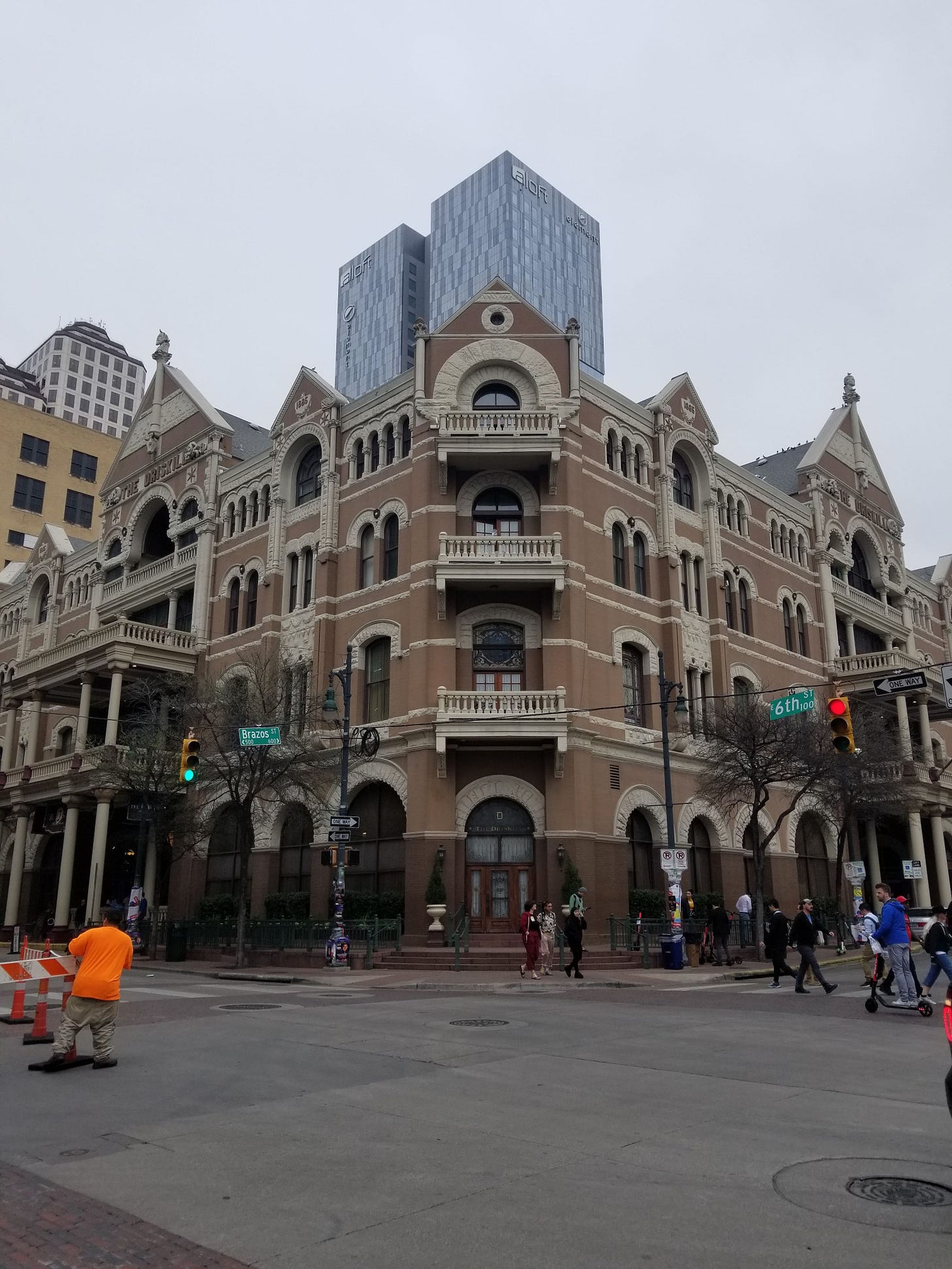 When we returned to Austin the following day, Jeff drove past the capitol and then through the UT campus so that we could show the kids a college campus and drive them past the stadium. We walked toward the state capitol, making stops to take daylight pictures in front of both the Susanna Dickenson and O. Henry houses and inside the Driskill Hotel, although getting both kids into the hotel was a challenge because our son didn't even want to walk on the same side of the street as the hotel. We wanted to prove to him that there was nothing for him to be scared about.