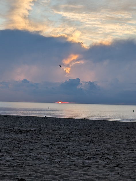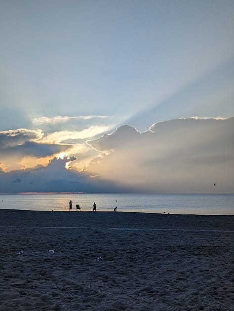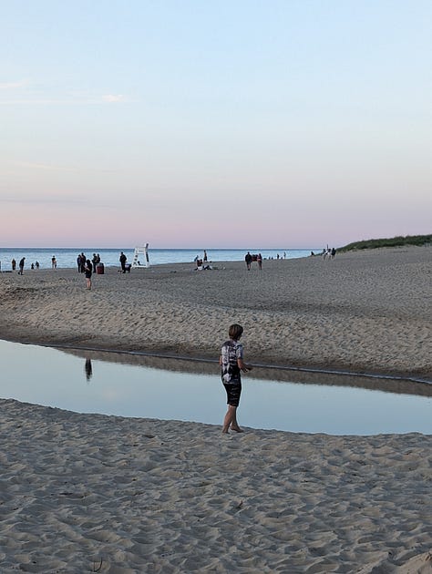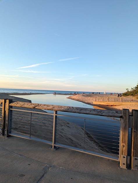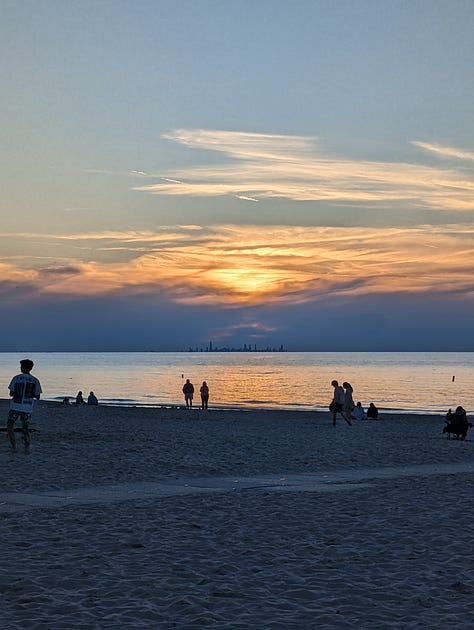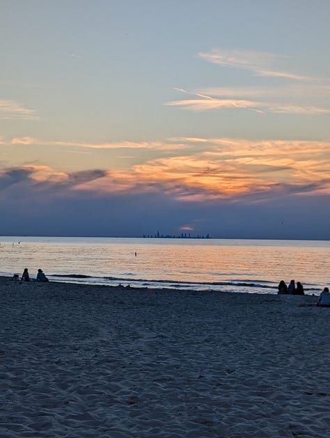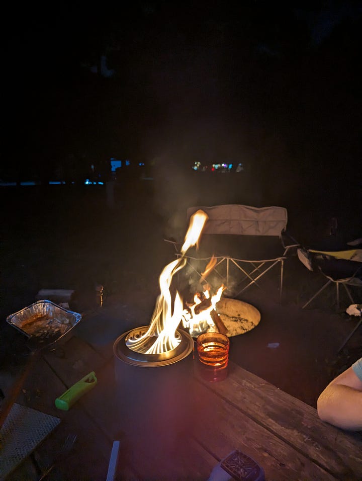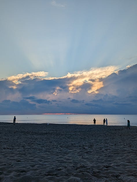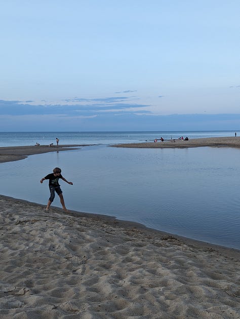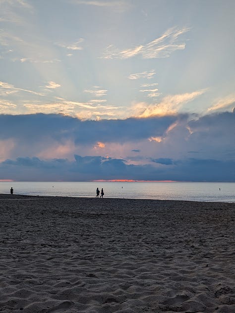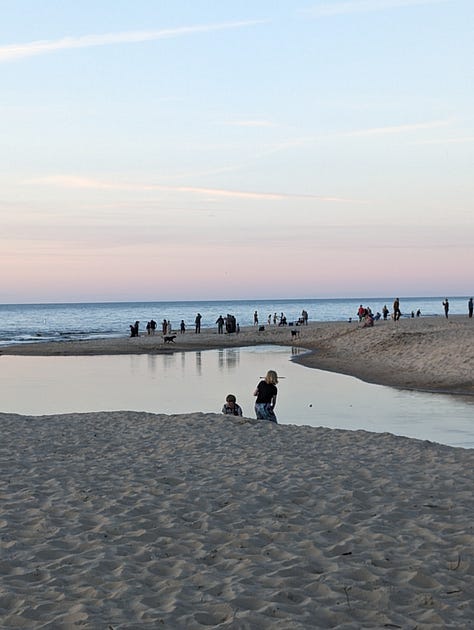 Concerned about the incoming rain, I told my family I was determined to see at least one sunset over Lake Michigan. A friend came over from Valparaiso for some campfire and beach time, so we walked to the beach while the rest of the family rode their bikes. I’m not sure how much of the sunset my kids saw. They were both pretty focused on skipping rocks on the little inlet next to the big lake.