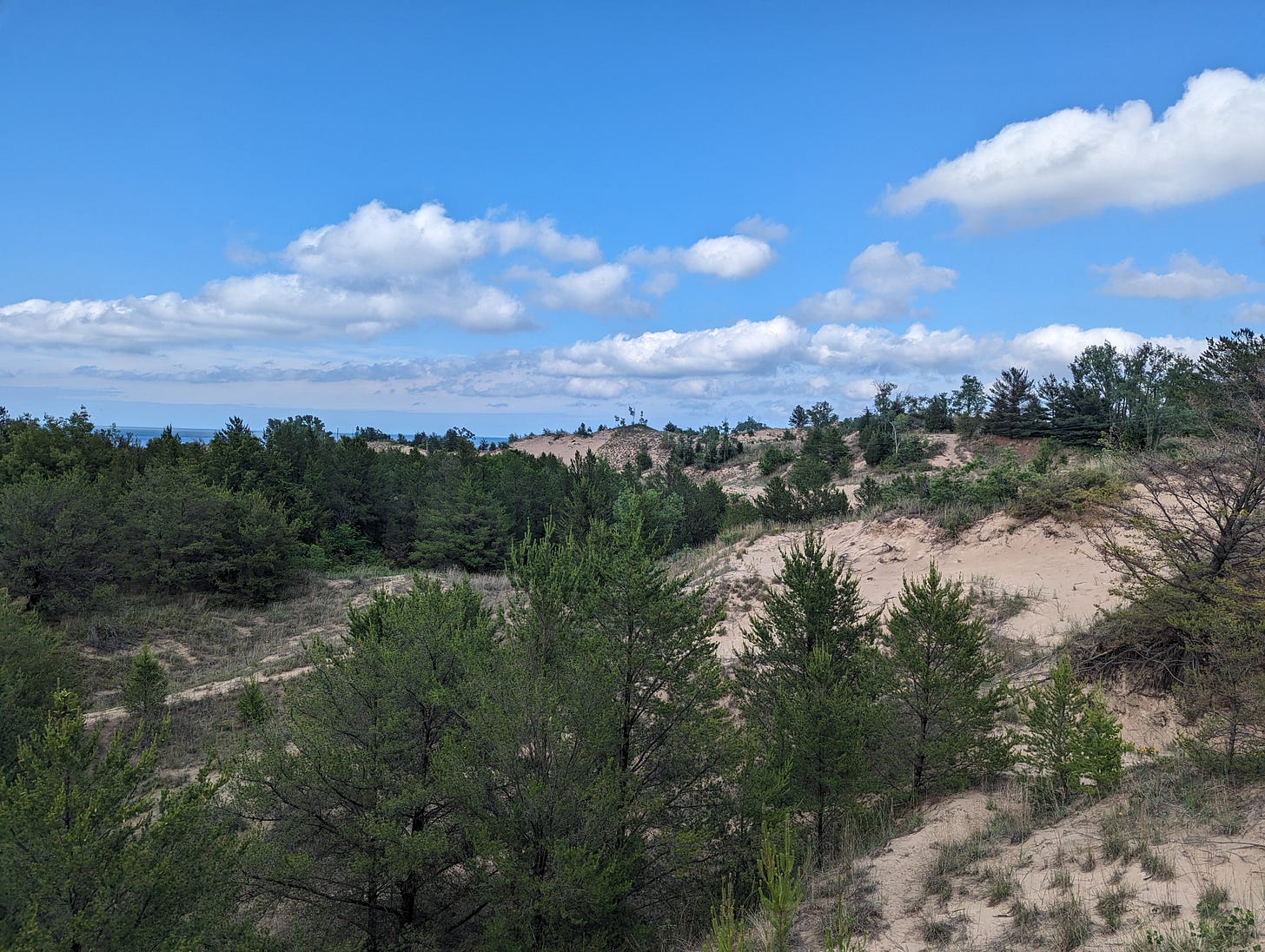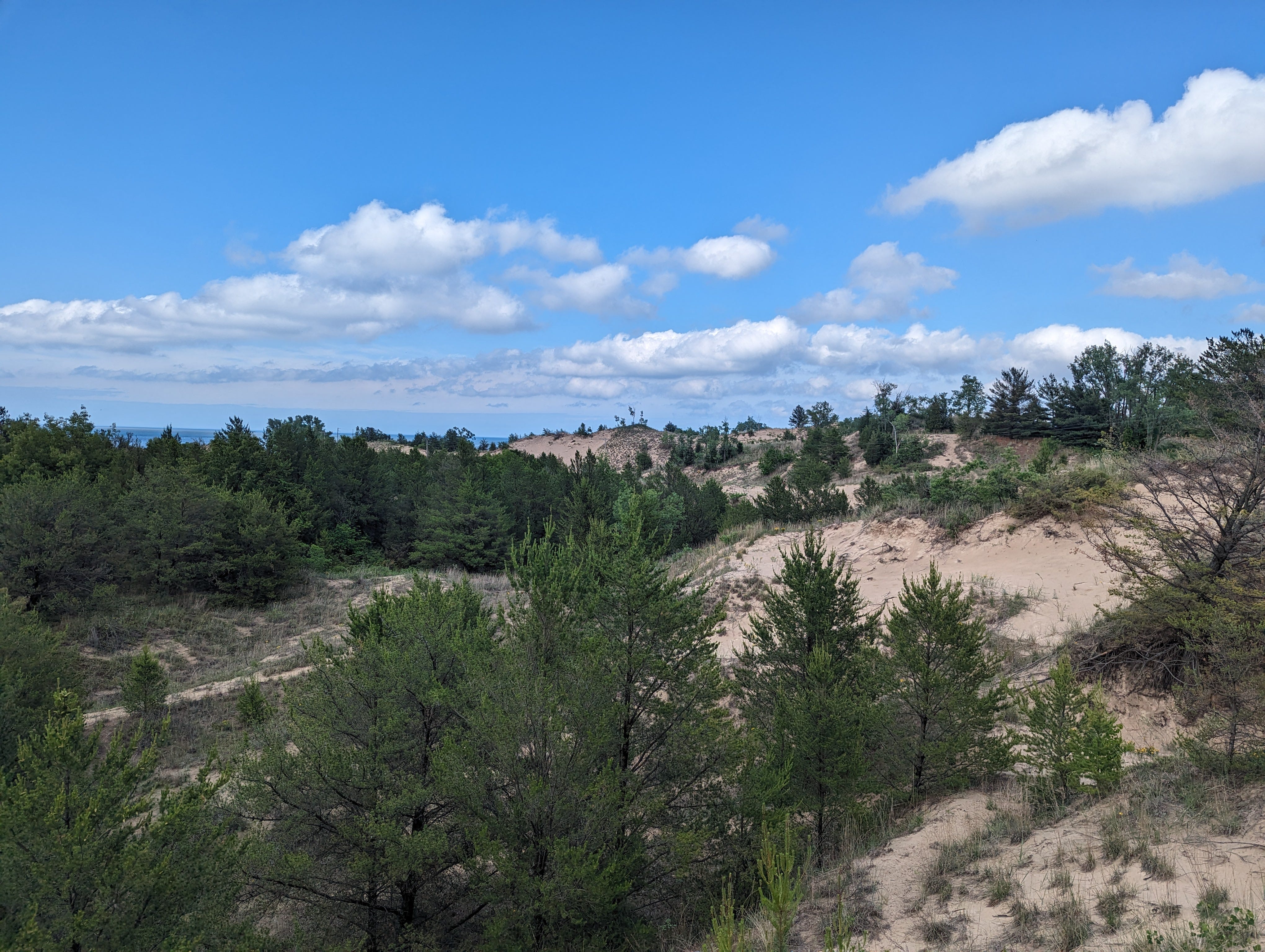 Since we were already out, we also made a quick stop at the Albanese Candy Factory Outlet in Hobart, Indiana, and left with a pile of messed-up gummies. By the time we arrived back at the campground and I walked both dogs, it had cleared out enough that we were able to finally return to the national park so we could do the Diana of the Dunes Dare, finishing one more dune hike before the weekend was complete.