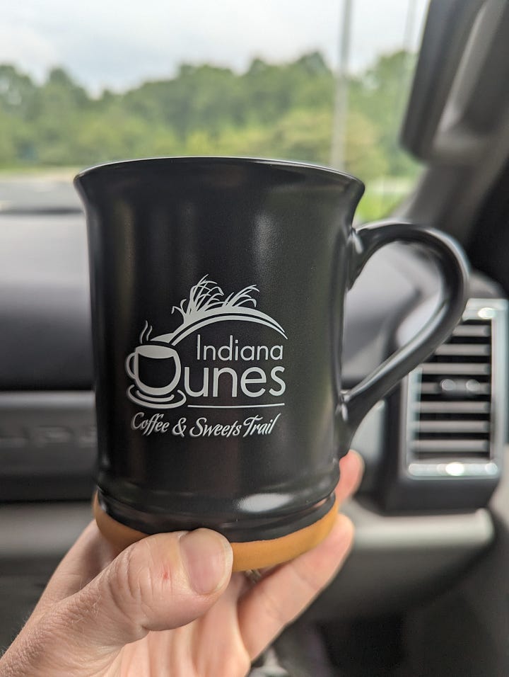 I had hoped for a hike on Sunday morning before the rain hit, but by the time we wrapped up breakfast, the sky was spitting at us. Instead, we decided to complete the Indiana Dunes Coffee and Sweets Trail, courtesy of local tourism boards and the National Park. We stopped at four local coffee and pastry shops and tried out the local goods, rewarded with a new mug when we returned to the visitor center later in the day.