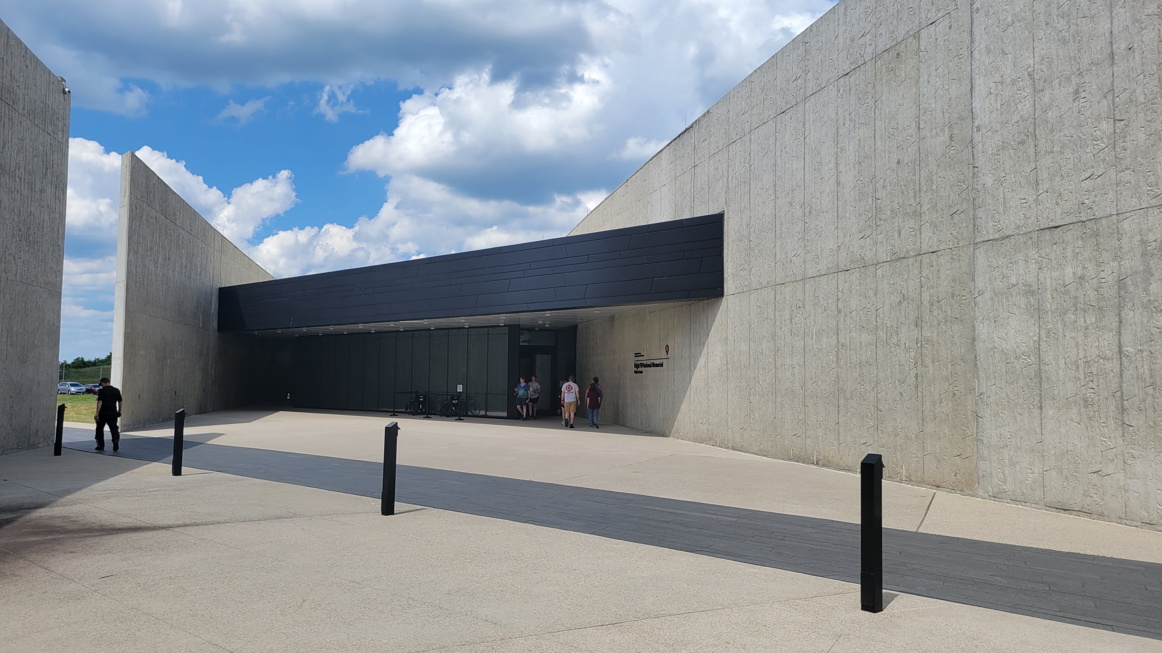 Since we had the camper and the dogs with us, we had to make some decisions regarding just how much we would do at the memorial in the middle of the summer. We headed straight for the Visitor Center and parked in the crowded parking lot, thankful that there were still RV parking spots available. We started the generator and turned on the AC in our bedroom so that the dogs would be safe for about an hour and then walked over to the Visitor Center. The Visitor Center walkway gives the timeline for the morning of September 11, including the times that each of the four planes crashed and where they crashed. Inside of the beautiful new visitor center, the museum includes a full breakdown of the events leading up the September 11, discussion of the morning of (including news clips playing on repeat), and artifacts that were found in the field as investigators put together their own pieces of the puzzle.