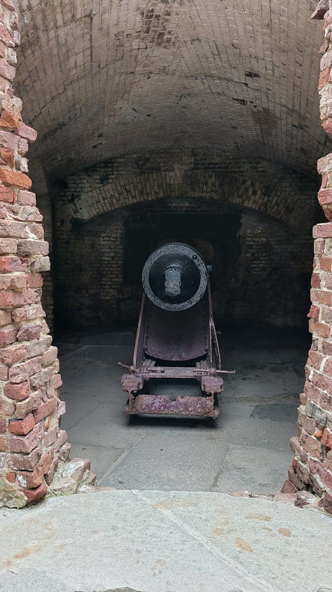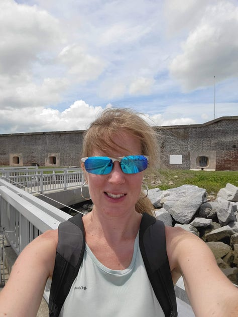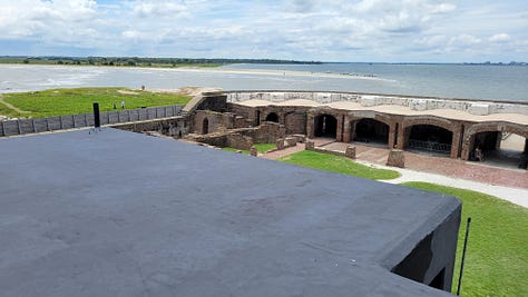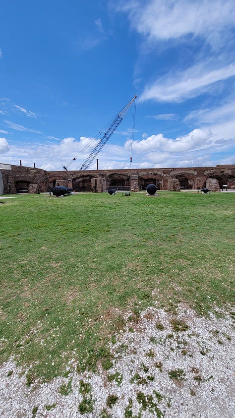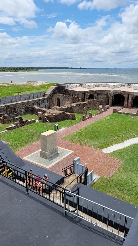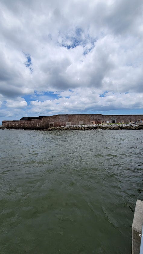 The next day I had designated for exploring Fort Sumter and Charleston. While it was only 35 miles, we discovered (again) that the drive to the city was longer and more difficult than it looked on paper. We still had to travel nearly an hour to make it to the ferry on time. Since the only way to visit the site of the first battle of the Civil War is to take the ferry boat, we were on a tight schedule.